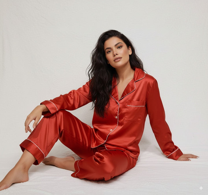 The Satin Pajama Set combines luxurious softness with elegant style, offering a smooth and silky feel that enhances nighttime comfort. Its breathable satin fabric glides effortlessly over the skin, reducing irritation and promoting a restful sleep. Designed with a relaxed fit, this set allows freedom of movement while maintaining a polished appearance, making it an ideal choice for both sleep and lounging. Perfect for those seeking a blend of sophistication and comfort in their nightwear collection.